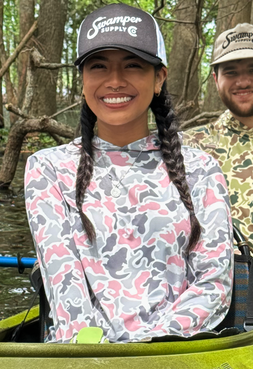 Women's Pink Critter Camo Long Sleeve Crew Neck Shirt